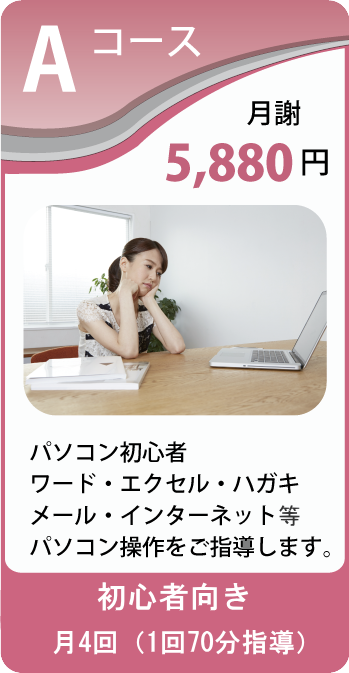 ■毎週1回70分指導(月4回指導)と低料金ですが、充実したパソコン指導を致します。