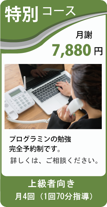 ※毎週月曜日が受講日ですが、受講できない方は、他の曜日も受講可能です。(予約制)